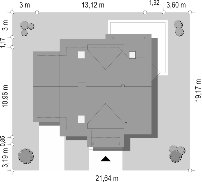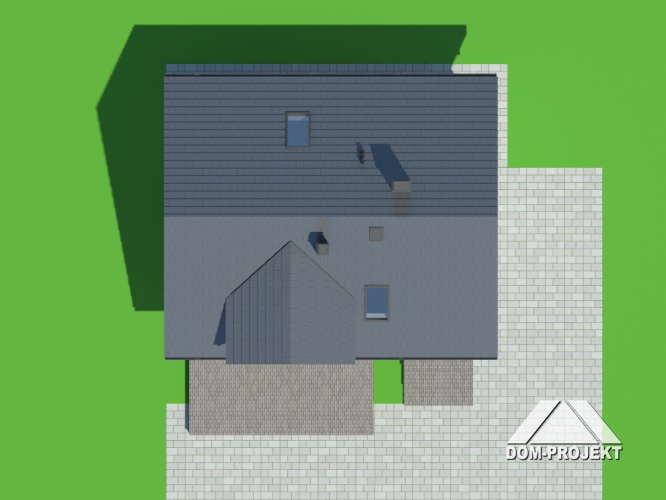 Interesujący dom z poddaszem mieszkalnym. Salon wraz z kuchnią tworzą wspólną przestrzeń. W salonie kominek, a w narożu schody prowadzące na poddasze. Na parterze znajdziemy także łazienkę i wydzielone pomieszczenie kotłowni. Na poddaszu cztery ustawne sypialnie, w tym dwie z wyjściem na balkon i łazienka. Do budynku dobudowany garaż.