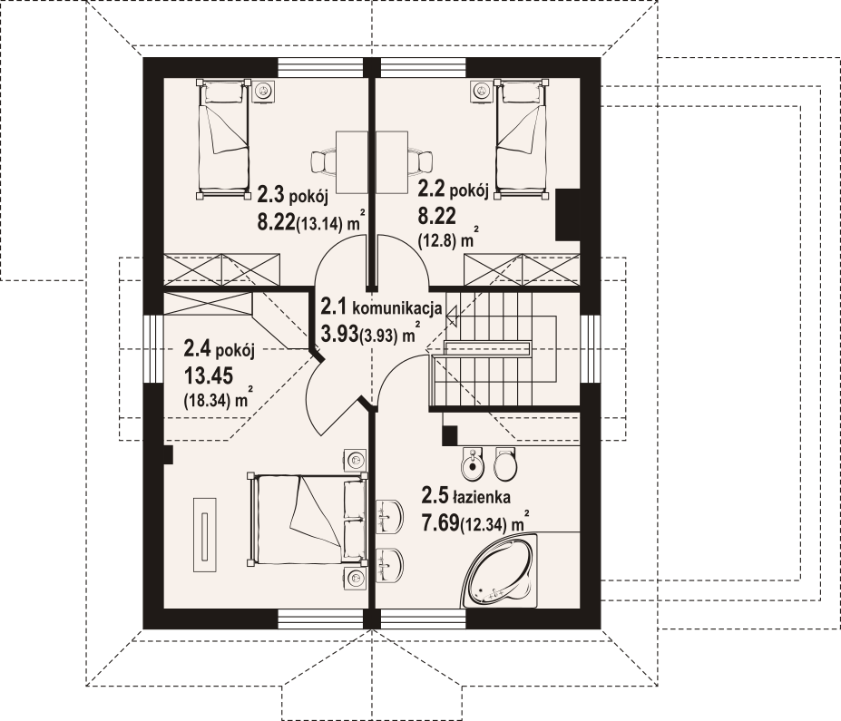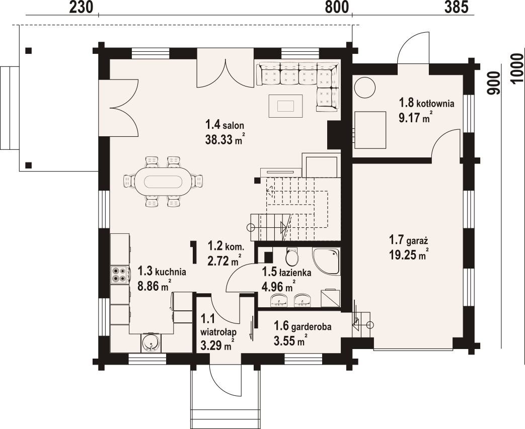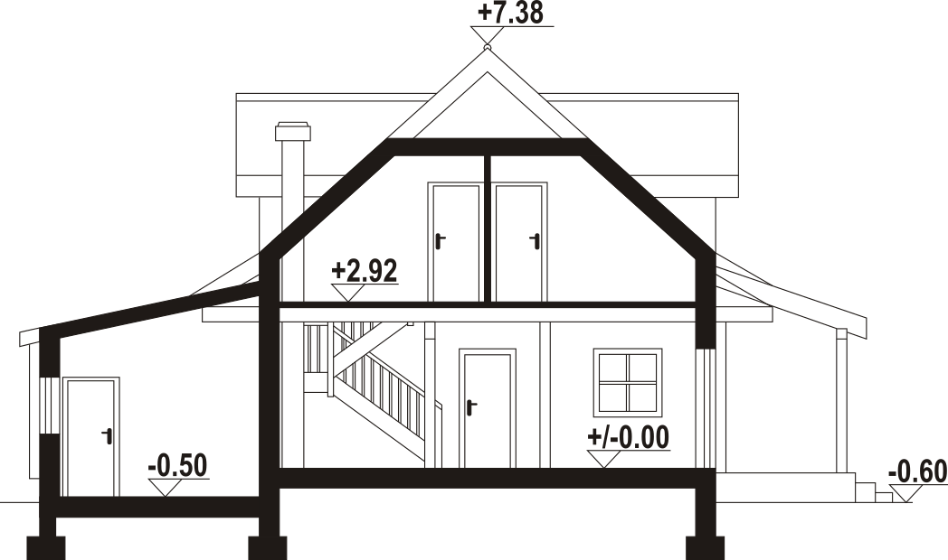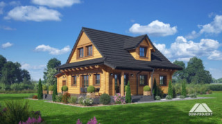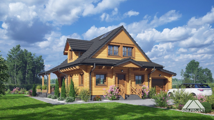 Urokliwy dom z poddaszem użytkowym. Na parterze przestronny, słoneczny salon z kominkiem i wyjściem na taras. Wydzielona kuchnia, łazienka, kotłownia i jednostanowiskowy garaż uzupełniają program użytkowy parteru. Na poddaszu znajdują się trzy wygodne sypialnie oraz łazienka.