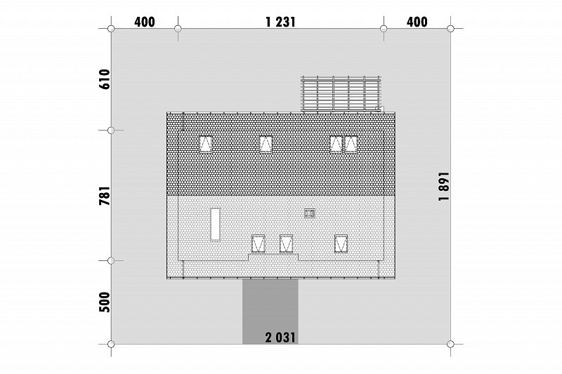 Nieduży dom parterowy, którego głównym pomieszczeniem jest salon połączony we wspólnej przestrzeni z aneksem kuchennym. Ponadto w programie funkcjonalnym trzy sypialnie, łazienka i spiżarka.