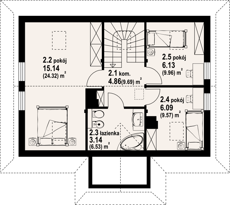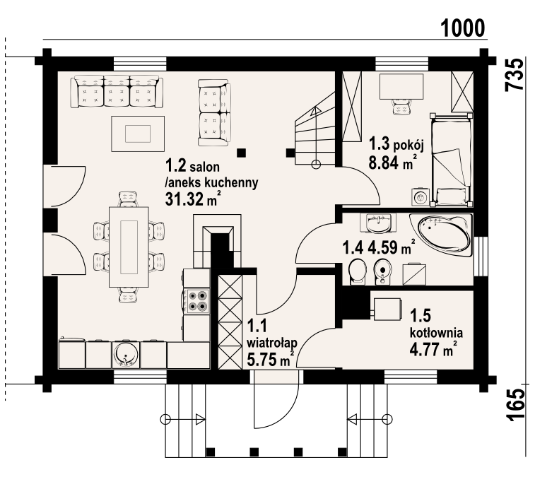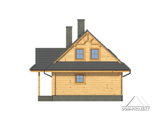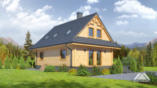 Dom z bali drewnianych . Zewnętrzny wygląd nawiązuje do tradycji domów góralskich a układ funkcjonalny wewnątrz jest współczesny. 5 pokoi, 2 łazienki, kotłownia. Salon z aneksem kuchennym, kominkiem, schodami na poddasze i wyjściem na taras. Pokój, łazienka, wiatrołap, kotłownia. Na poddaszu 3 pokoje i łazienka. Dom mieszkalny, który może być domem letniskowym.