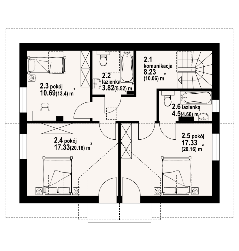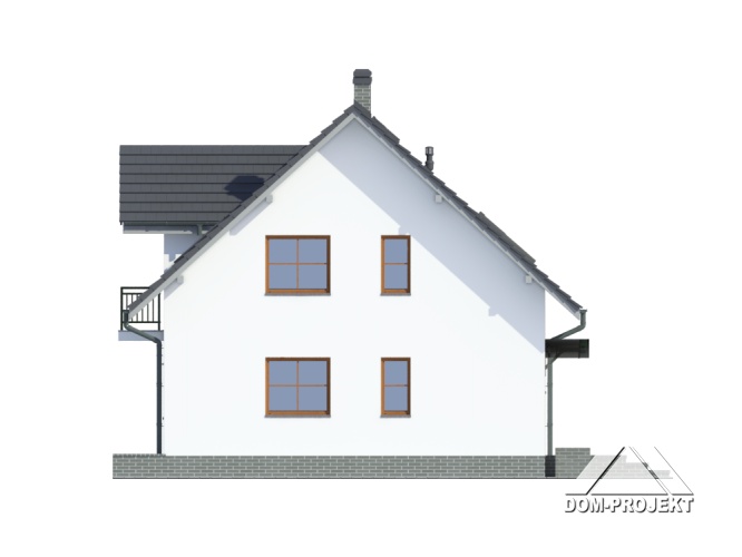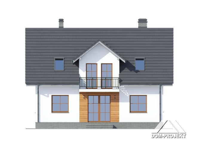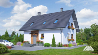 Wygodny dom jednorodzinny. Duży salon z kominkiem, wyjściem na spory taras i przejściem do dużej kuchni. Pokój, łazienka, wiatrołap, spiżarka i komunikacja. Na poddaszu trzy pokoje, dwie łazienki, balkon i komunikacja. Zwarta bryła budynku i dach dwuspadowy sprzyjają szybkiej i taniej budowie i niskim kosztom eksploatacji.
