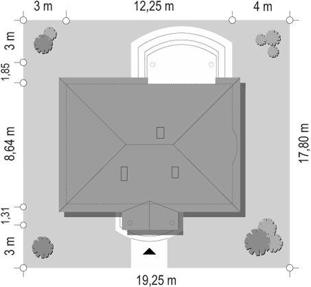 Dom z bali drewnianych. Duży salon z aneksem kuchennym, kominkiem, wyjściem na zadaszony taras i schodami na poddasze. Pokój, łazienka, komunikacja i wiatrołap. Na poddaszu dwa pokoje, garderoba, komunikacja i balkon. Zwarta bryła budynku i dach dwuspadowy sprzyjają szybkiej i taniej budowie i niskim kosztom eksploatacji.
