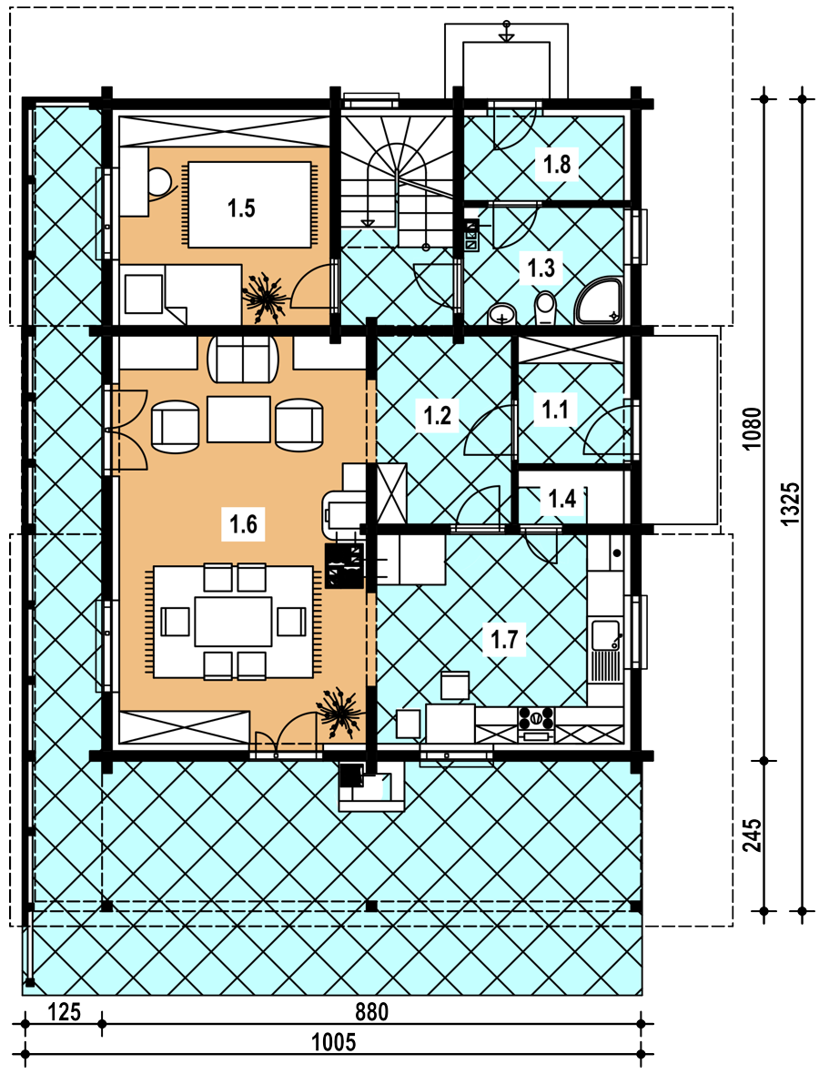 1 wiatrołap 3.60 hall 11.30 łazienka 4.90 spiżarka 1.50 pokój 11.80 pokój dzienny 26.40 kuchnia 13.80 pom. gospodarcze 3.60