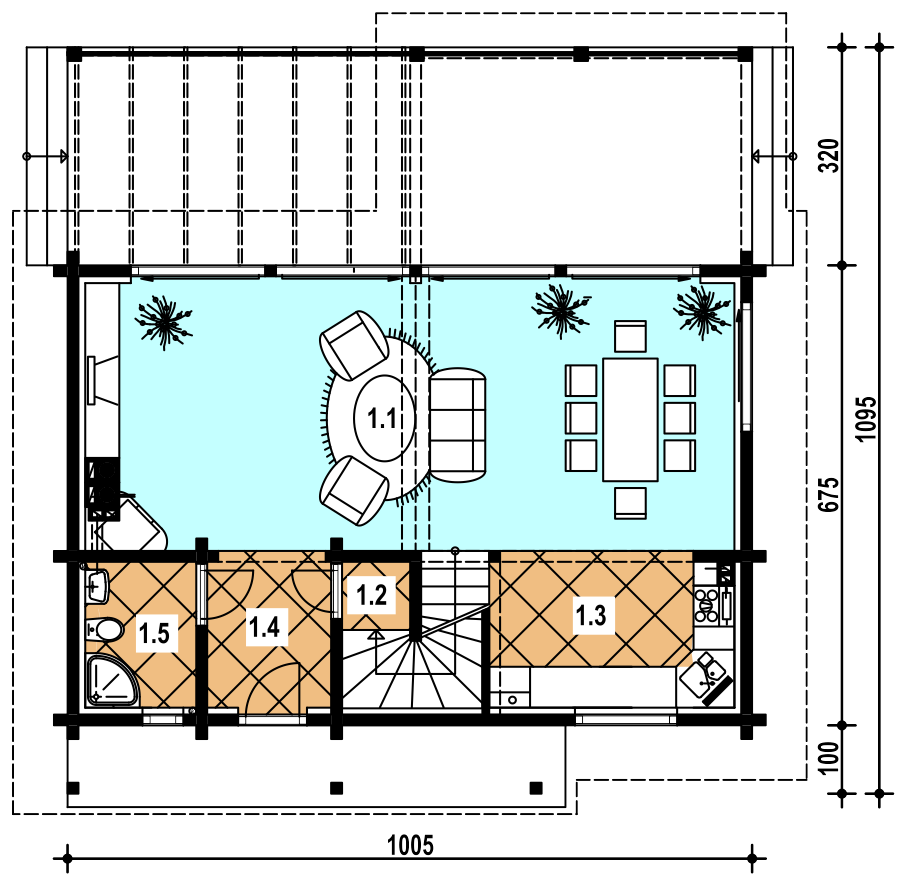 1 pokój dzienny 36.30 komunikacja 2.20 kuchnia 7.80 wiatrołap 3.80 łazienka 3.30
