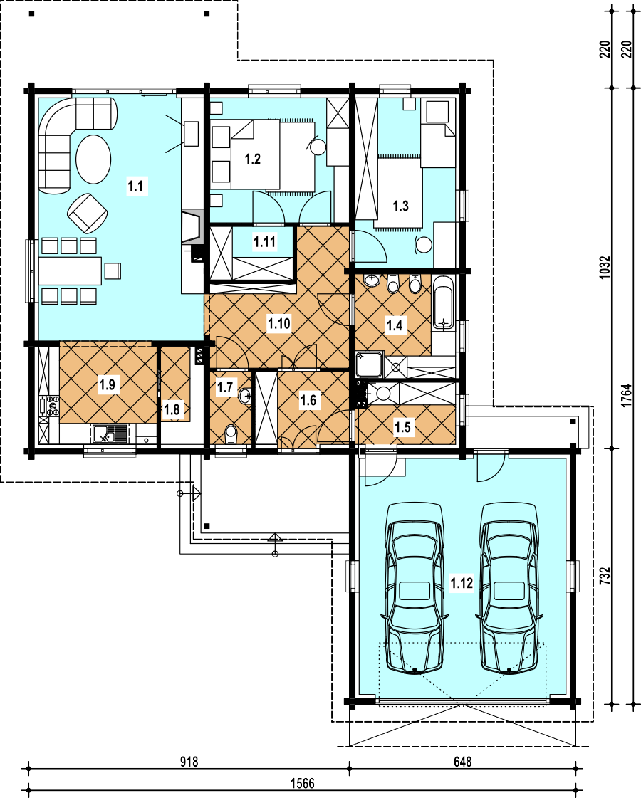 1 sypialnia 14.30 sypialnia 14.10 łazienka 8.60 kotłownia 4.90 wiatrołap 5.60 wc 2.50 spiżarnia 3.50 kuchnia 9.50 hall 12.20 garderoba 3.70 garaż 0.00 pokój dzienny 33.00
