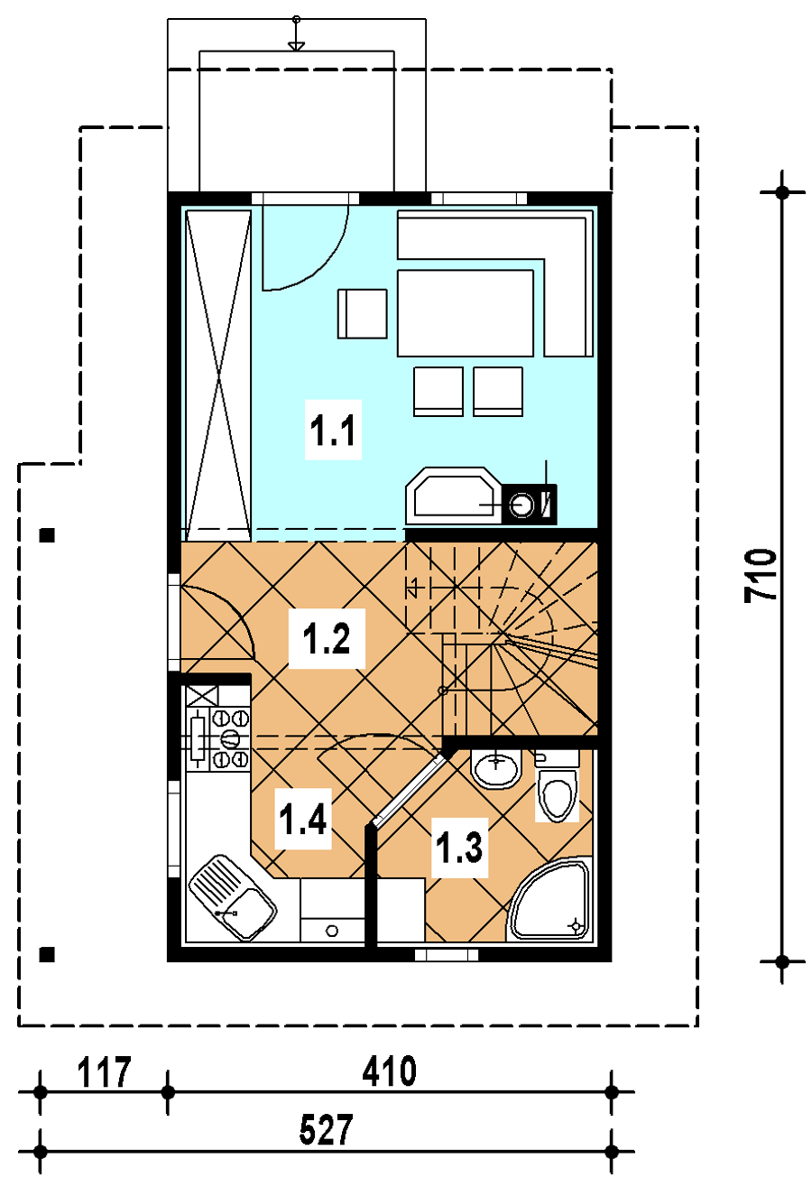 1 pokój dzienny 9.90 hall 4.10 łazienka 2.90 kuchnia 3.70