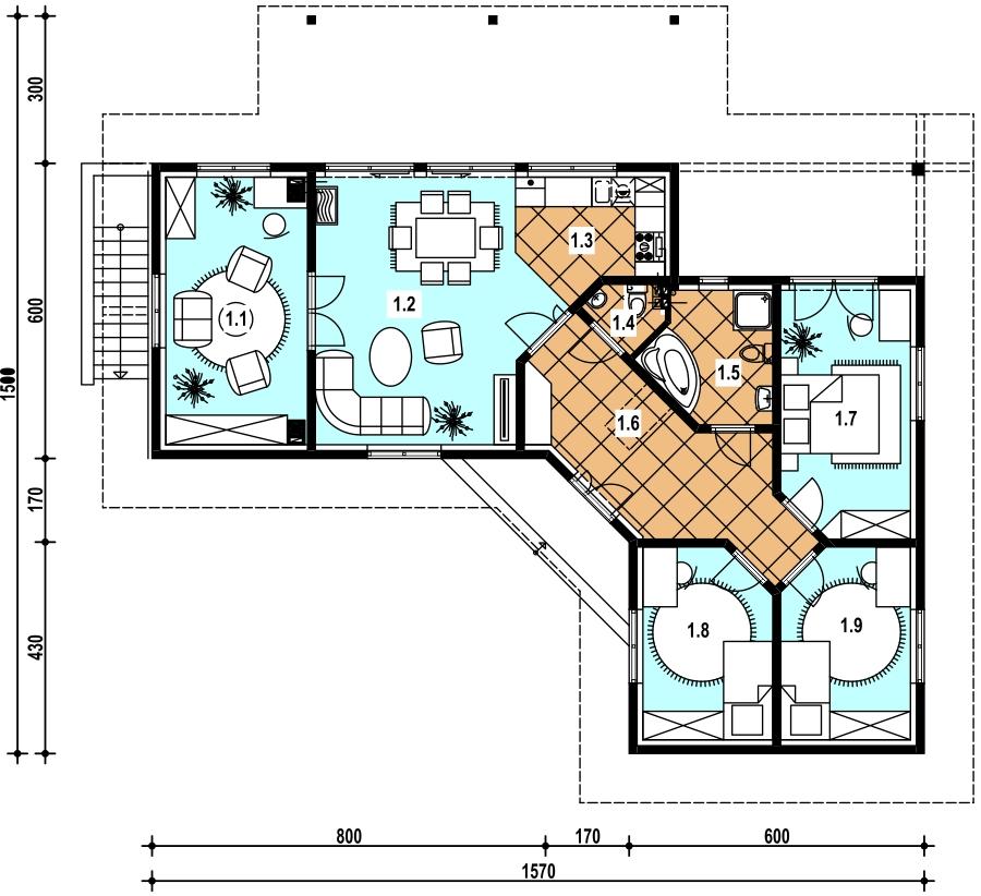 1 gabinet 15.30 pokój dzienny 23.40 aneks kuchenny 6.40 toaleta 1.40 łazienka 6.20 hall 14.40 sypialnia 12.90 sypialnia 9.90 sypialnia 9.90