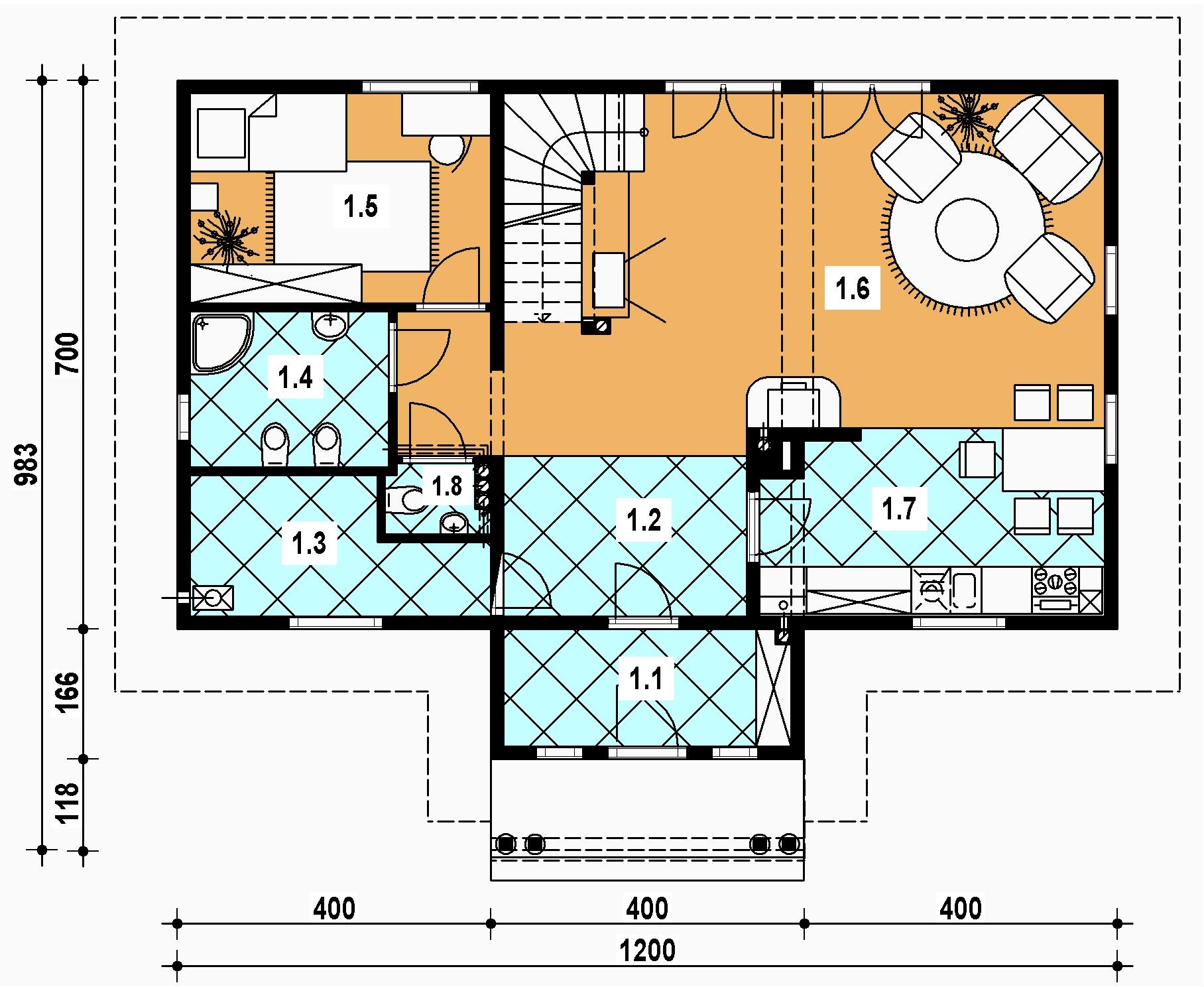 1 wiatrołap 4.70 hall 9.90 łazienka 5.10 kotłownia 4.50 sypialnia 9.50 pokój dzienny 31.40 kuchnia 8.80 wc 1.20