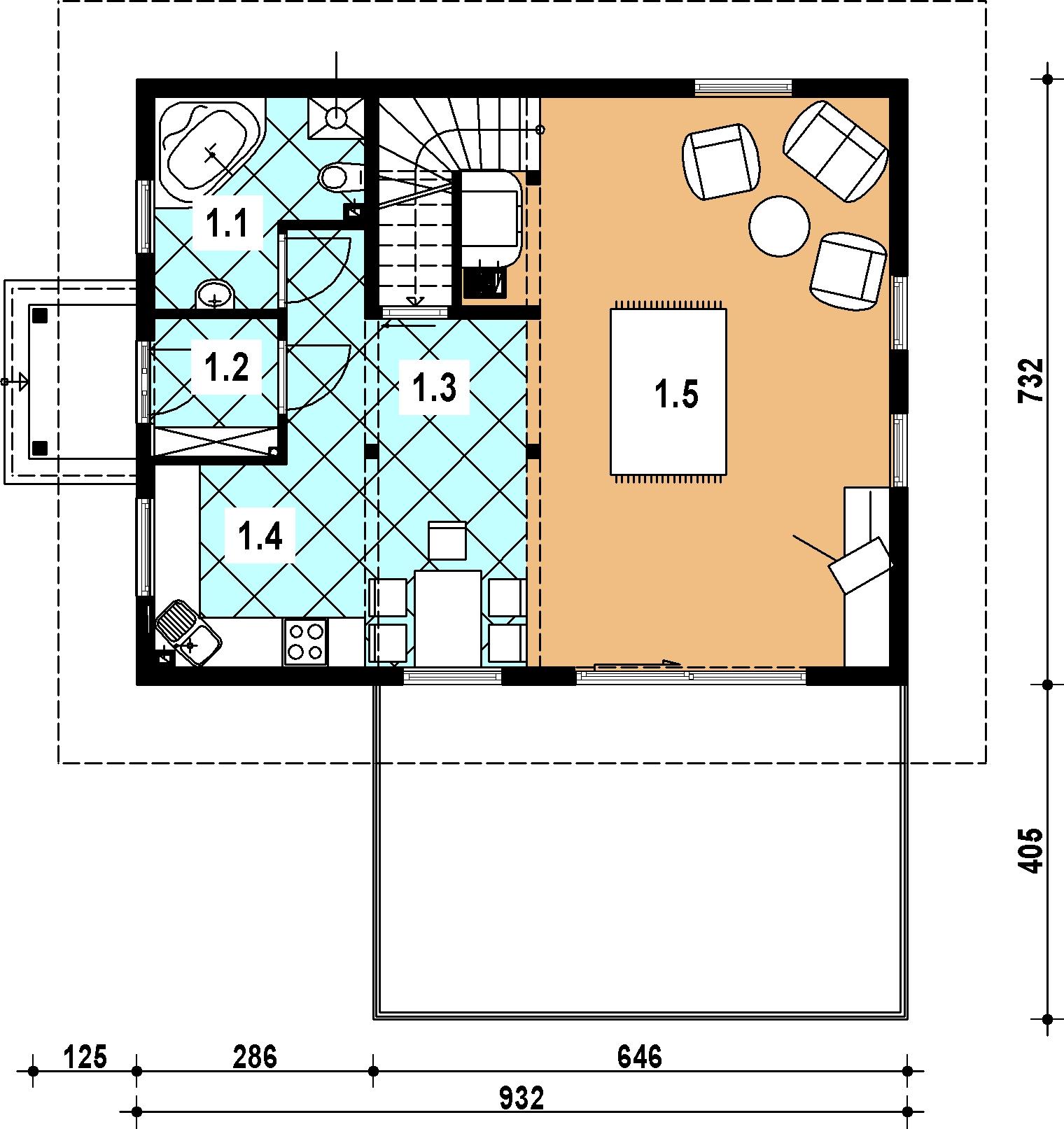1 łazienka 4.90 wiatrołap 2.40 hall 6.20 aneks kuchenny 10.40 pokój dzienny 30.20