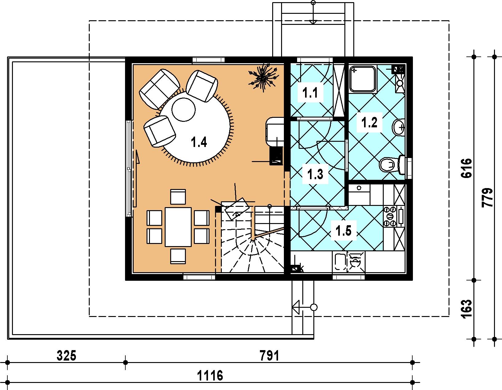 1 wiatrołap 2.10 łazienka 4.60 kuchnia 6.20 pokój dzienny 22.80 hall 3.50