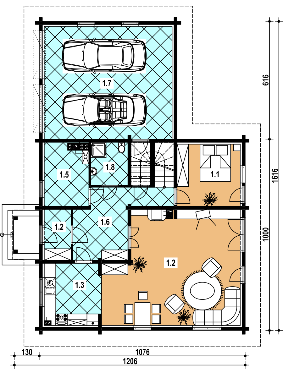 1 sypialnia 10.60 pokój dzienny 39.10 kuchniawiatrołap 9.00 wiatrołap 3.70 kotłownia 7.30 komunikacja 17.60 garaż 0.00 łazienka 4.40