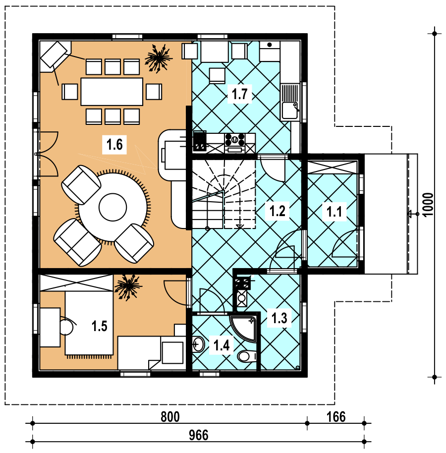1 przedsionek 4.10 hall 9.80 kotłownia 3.60 łazienka 2.90 pokój 11.40 pokój dzienny 27.60 kuchnia 9.60