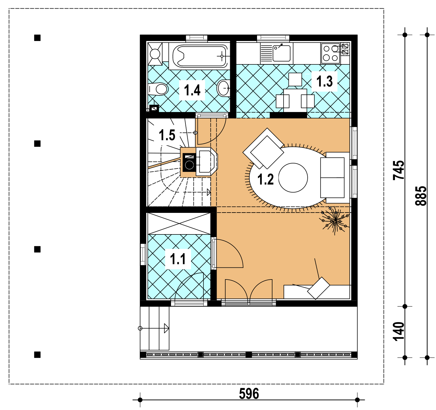 1 wiatrołap 3.70 pokój dzienny 17.70 kuchnia 6.00 łazienka 3.90 klatka schodowa 2.00