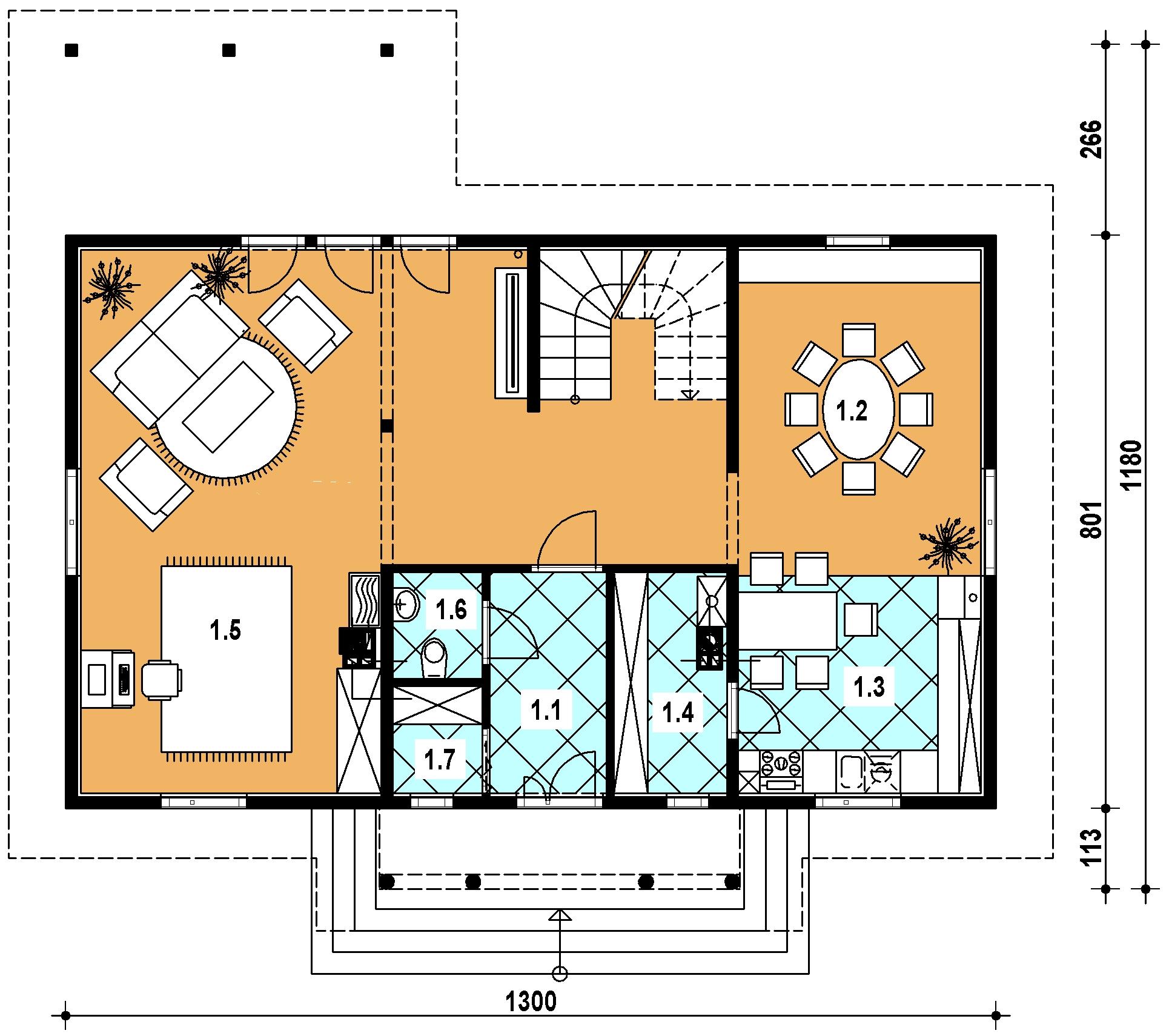 1 wiatrołap 4.40 jadalnia 16.50 kuchnia 8.20 pom. gospodarcze 4.60 pokój dzienny 48.40 wc 1.80 pom. gospodarcze 1.80