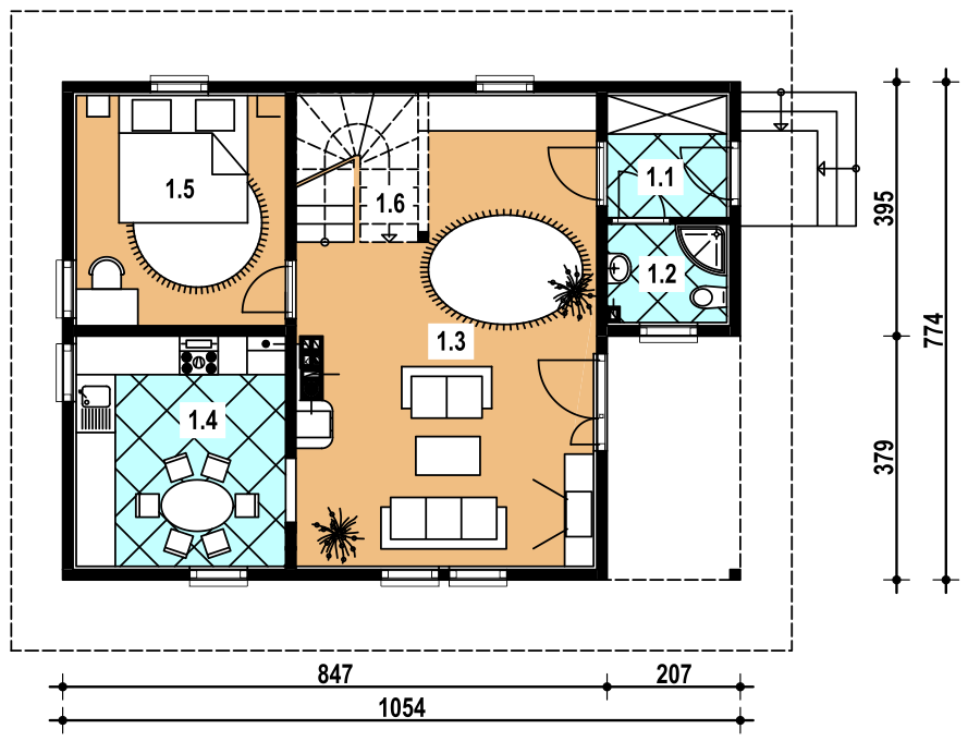 1 wiatrołap 3.30 łazienka 2.60 pokój dzienny 28.50 kuchnia 11.20 sypialnia 11.20 klatka schodowa 4.20