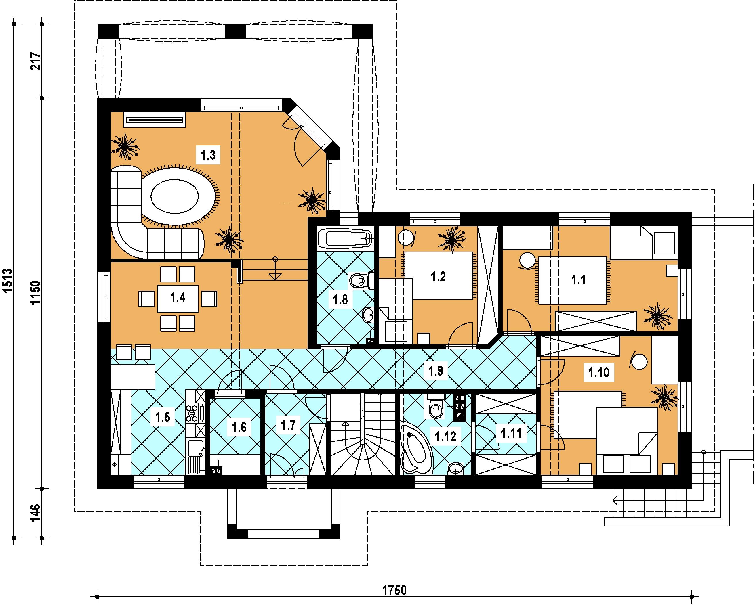 1 sypialnia 16.10 sypialnia 12.20 pokój dzienny 26.10 jadalnia 18.70 kuchnia 7.10 spiżarnia 3.30 wiatrołap 4.30 łazienka 5.90 korytarz 12.10 sypialnia 16.60 garderoba 4.30 łazienka 4.60 schody 4.60