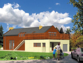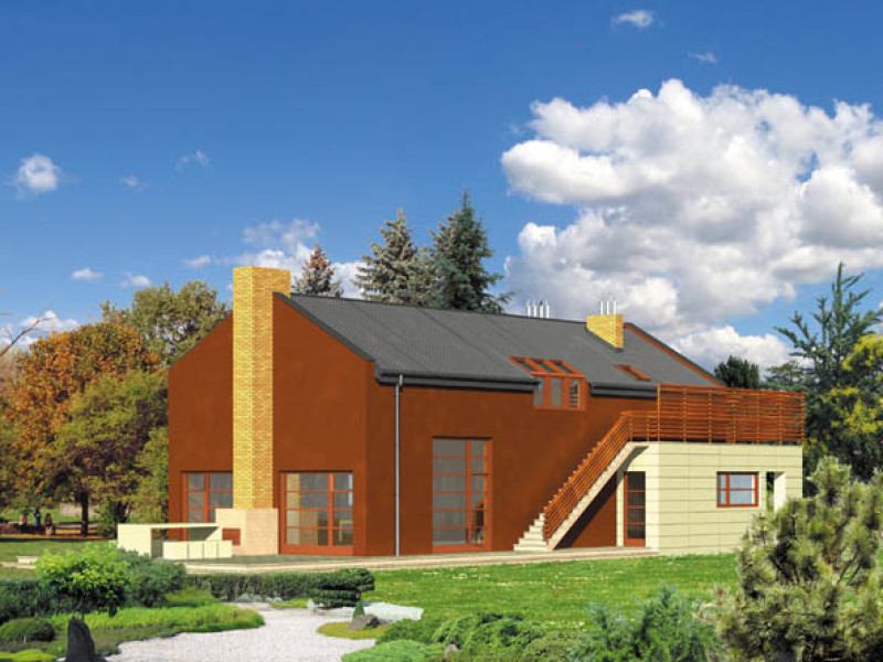Budynek jednorodzinny piętrowy, niepodpiwniczonyŚciany zewnętrzne: gr. 34 cm z pustaków gazobetonowych + styropian; strop: żelbetowy; schody: żelbetowe; dach: dwuspadowy o nachyleniu 30 stopni, kryty blachą dachówkopodobną