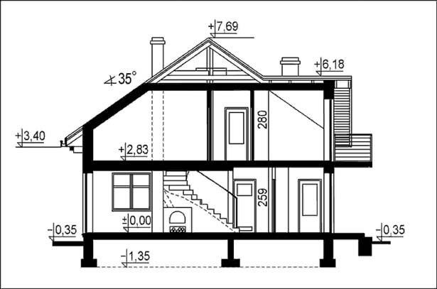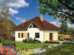 Budynek jednorodzinny parterowy z poddaszem mieszkalnym, niepodpiwniczonyŚciany zewnętrzne: gr. 39 cm z pustaków ceramicznych + styropian; strop: żelbetowy; schody: żelbetowe; dach: czterospadowy, o nachyleniu 35 stopni, więźba krokwiowo-kleszczowa, krycie dachówką
