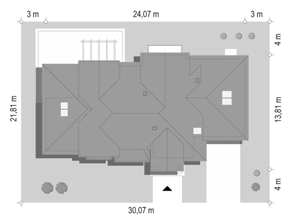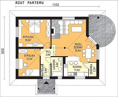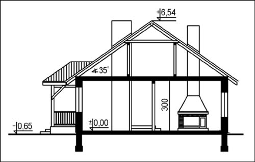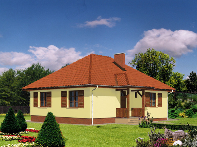 Budynek jednorodzinny, parterowy, z poddaszem nieużytkowym, niepodpiwniczonyŚciany zewnętrzne: grubość 38 cm pustak ceramiczny + styropian; strop: drewniany; dach: czterospadowy o nachyleniu 35 stopni, więźba krokwiowo-jętkowa, krycie dachówką ceramiczną
