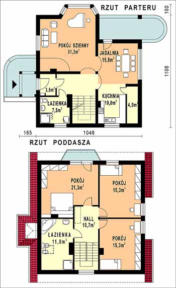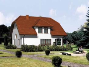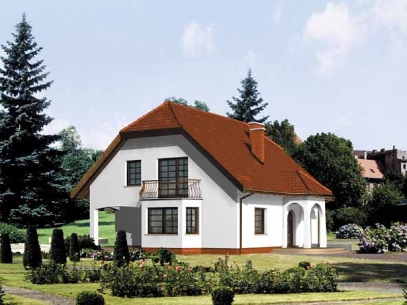 Budynek jednorodzinny, parterowy, z poddaszem mieszkalnym, niepodpiwniczonyŚciany zewnętrzne: grubość 38,0 cm - pustak ceramiczny + wełna mineralna; strop: FERT; schody: żelbetowe; dach: dwuspadowy o nachyleniu 41 stopni, więźba krokwiowo-jętkowa, krycie dachówką cementową BRAAS
