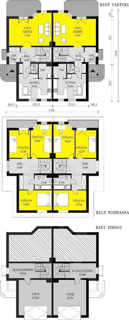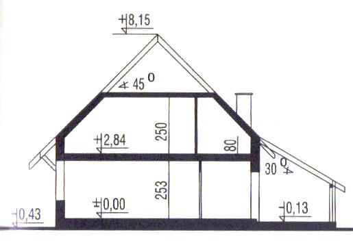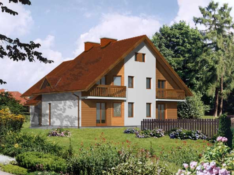 Budynek dwurodzinny (bliźniak), parterowy z poddaszem mieszkalnym, częściowo podpiwniczonyŚciany zewnętrzne: grubość 36,5 cm z bloczków YTONG; strop: płyta żelbetowa; schody: drewniane; dach: dwuspadowy o nachyleniu 37 stopni, więźba drewniana krokwiowo-płatwiowa, krycie dachówką cementową BRASS