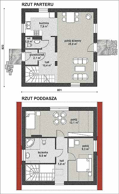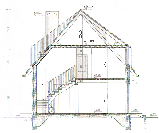 Budynek jednorodzinny, parterowy, z poddaszem mieszkalnym, niepodpiwniczonyŚciany zewnętrzne: grubość 38 cm: pustak ceramiczny + styropian; strop: drewniany; schody: drewniane; dach: dwuspadowy o nachyleniu 49 stopni, więźba jętkowa drewniana, krycie dachówką ceramiczną