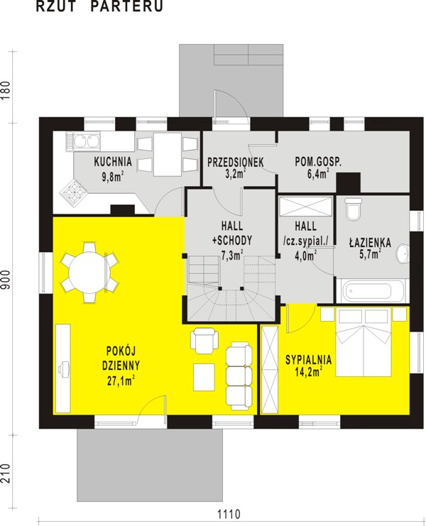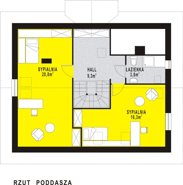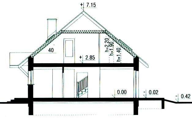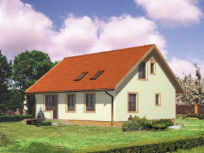 Budynek jednorodzinny, parterowy, z poddaszem mieszkalnym, niepodpiwniczonyŚciany zewnętrzne: gr. 40 cm z pustak ceramiczny + styropian; strop: prefabrykowany gęsto zbrojony; schody: policzkowe drewniane zabiegowe lub łamane; dach: dwuspadowy o nachyleniu 40 stopni, więźba krokwiowo-jętkowa, krycie dachówką bitumiczną