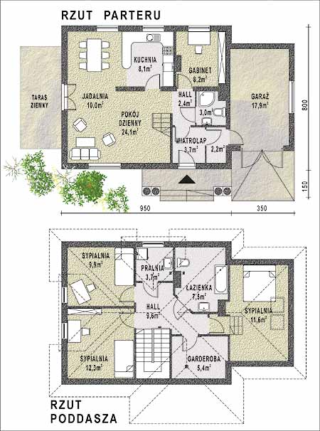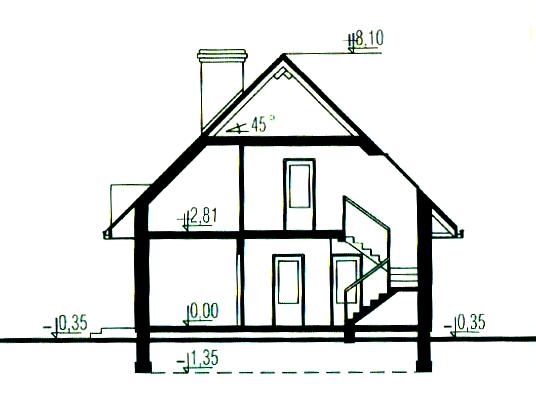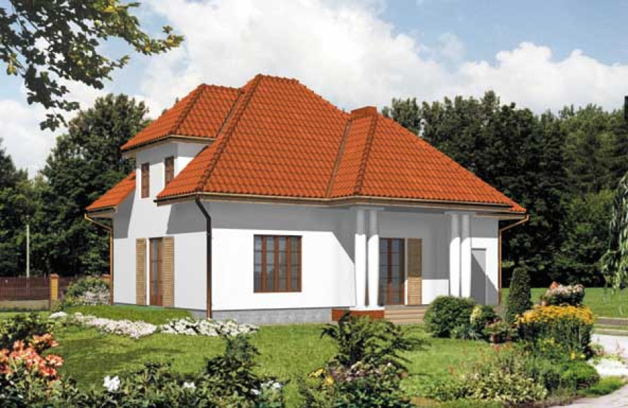 Budynek jednorodzinny, parterowy, z poddaszem mieszkalnym, niepodpiwniczonyŚciany zewnętrzne: gr. 32 cm; bloczek YTONG + styropian; strop: płyta żelbetowa; schody: drewniane; dach: czterospadowy o nachyleniu 45 stopni, więźba krokwiowo-płatwiowa, krycie dachówką ceramiczną