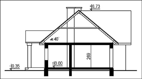Budynek jednorodzinny, parterowy, z poddaszem nieużytkowym, niepodpiwniczonyŚciany zewnętrzne: grubość 36,5 cm z bloczków YTONG; strop: drewniany; dach: dwuspadowy o nachyleniu 40 stopni, więźba krokwiowo-jętkowa, krycie dachówką ceramiczną