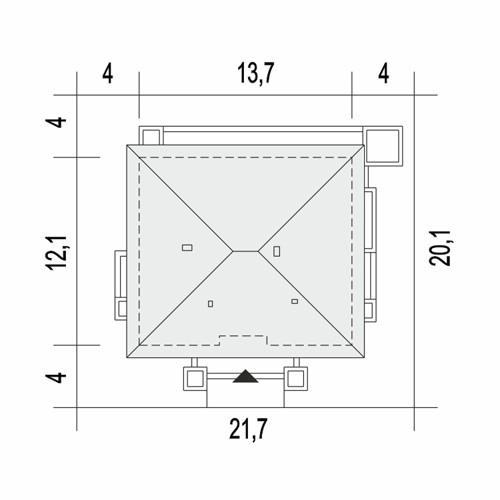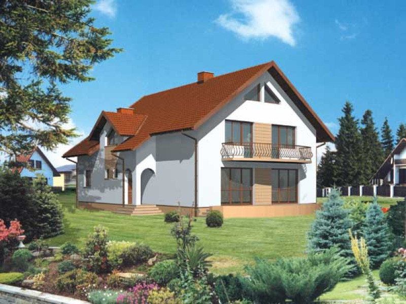 Budynek dwurodzinny (bliźniak) parterowy z poddaszem mieszkalnym, częściowo podpiwniczony (koszt realizacji dotyczy 1 segmentu)Ściany zewnętrzne: gr. 33 cm; pustak ceramiczny + styropian; strop: FERT; schody: z piwnicy na parter żelbetowe, na poddasze drewniane; dach: dwuspadowy o nachyleniu 36 stopni, więźba krokwiowo-jętkowa, krycie blachodachówką