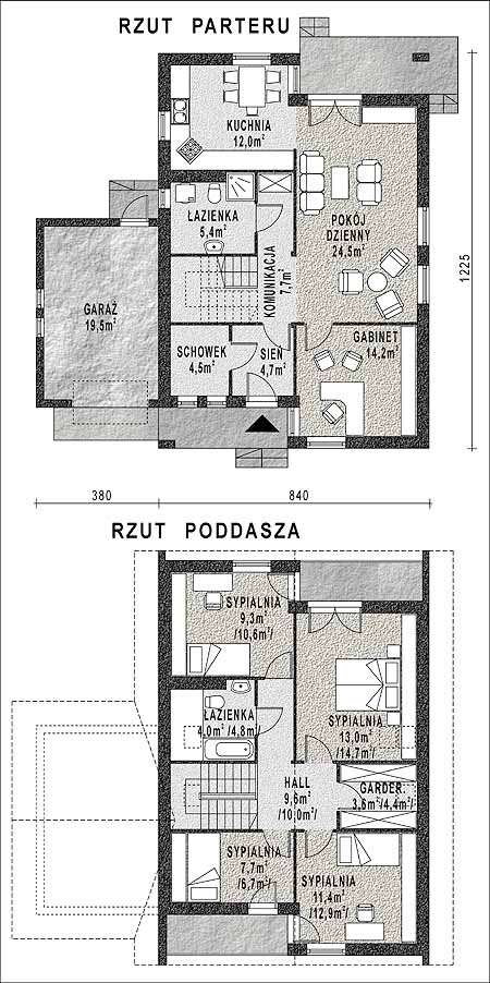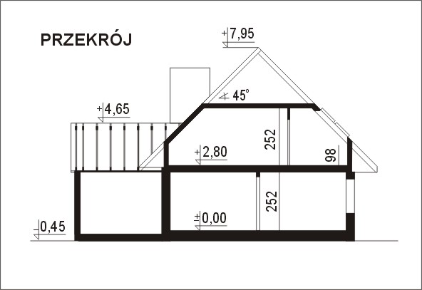Budynek jednorodzinny, parterowy z poddaszem mieszkalnym, niepodpiwniczonyŚciany zewnętrzne: gr. 36,5 cm z bloczków YTONG; strop: drewniany; schody: drewniane, policzkowe; dach: dwuspadowy o nachyleniu 45 stopni, więźba: ramy drewniane, nad garażem 23 stopnie drewniane kratownice, krycie dachówką bitumiczną