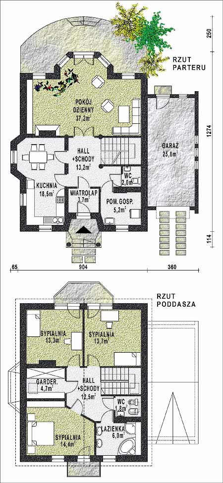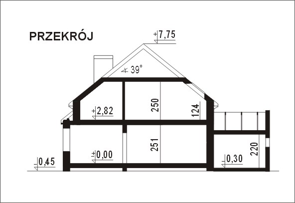 Budynek jednorodzinny, parterowy, z poddaszem mieszkalnym, niepodpiwniczonyŚciany zewnętrzne: grubość 44 cm z pustaków ceramicznych; strop: TERIVA; schody: żelbetowe, płytowe; dach: dwuspadowy o nachyleniu 39 stopni, więźba krokwiowo-jętkowa, krycie dachówką