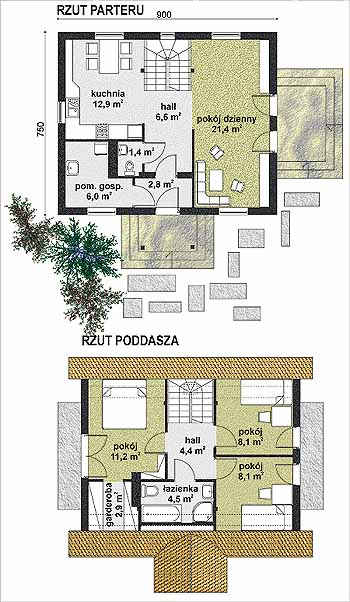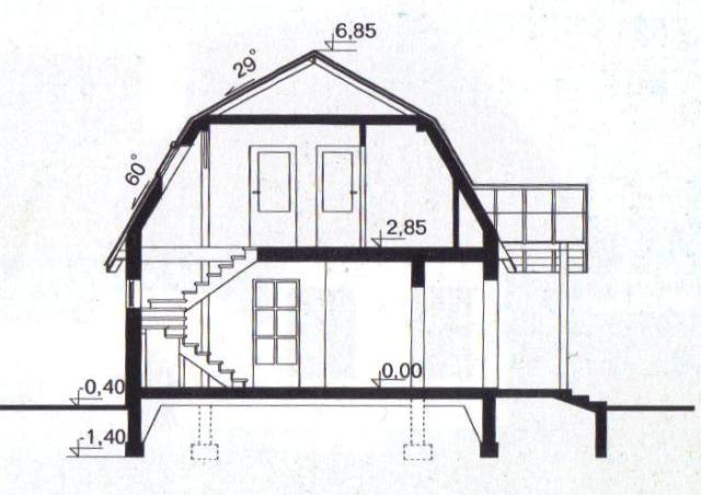 Budynek mieszkalno-letniskowy, parterowy, z poddaszem mieszkalnym, niepodpiwniczonyŚciany zewnętrzne: grubość 30 cm z bloczków YTONG + styropian; strop: drewniany; schody: drewniane; dach: dwuspadowy o nachyleniu 29 stopni i 60 stopni, więźba drewniana, krokwiowo-jętkowo-płatwiowa, krycie dachówką ceramiczną