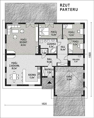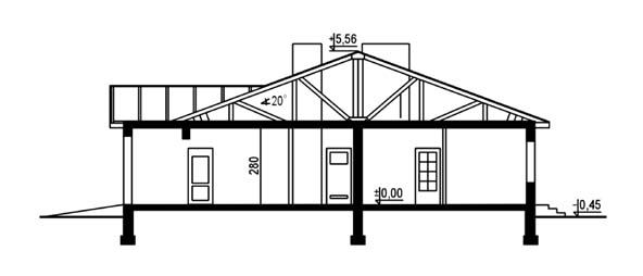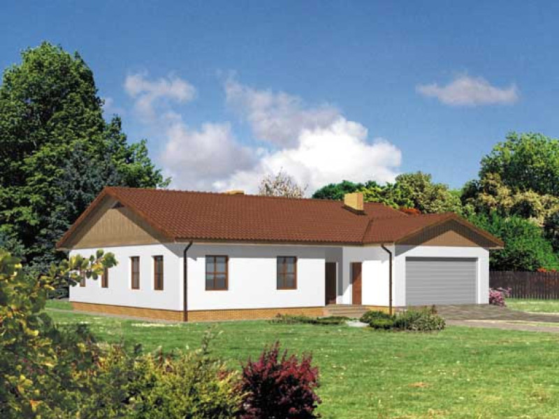 Budynek jednorodzinny, parterowy, z poddaszem nieużytkowym, niepodpiwniczonyŚciany zewnętrzne: grubość 30 cm z bloczków YTONG+ styropian; strop: drewniany; dach: dwuspadowy o nachyleniu 20 stopni, więźba drewniana, krycie dachówką bitumiczną, alternatywnie - blachą głęboko tłoczoną
