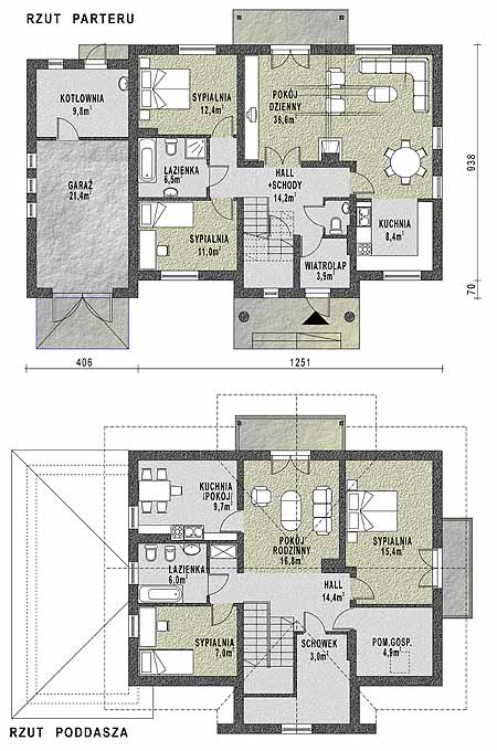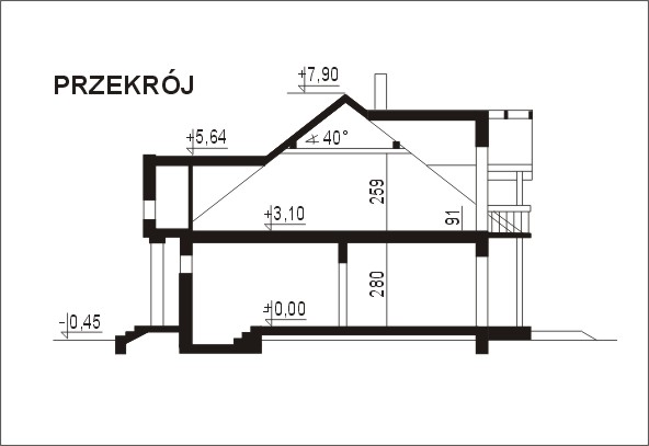 Budynek jednorodzinny, parterowy, z poddaszem mieszkalnym, niepodpiwniczonyŚciany zewnętrzne: grubość 38 cm z pustaków ceramicznych POROTHERM; strop: FERT; schody: żelbetowe; dach: dwuspadowy o nachyleniu 40 stopni, więźba drewniana, krycie dachówką ceramiczną