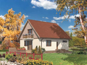 Budynek jednorodzinny, parterowy z poddaszem mieszkalnym, podpiwniczonyŚciany zewnętrzne: gr. 38 cm z pustaków ceramicznych + styropian; strop: FERT; schody: żelbetowe; dach: dwuspadowy o nachyleniu 40 stopni, więźba krokwiowo - jętkowa, krycie dachówką bitumiczną