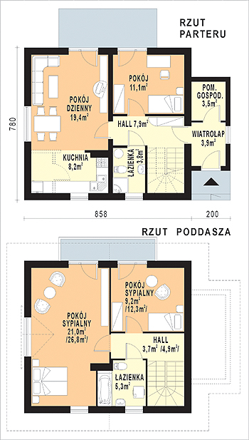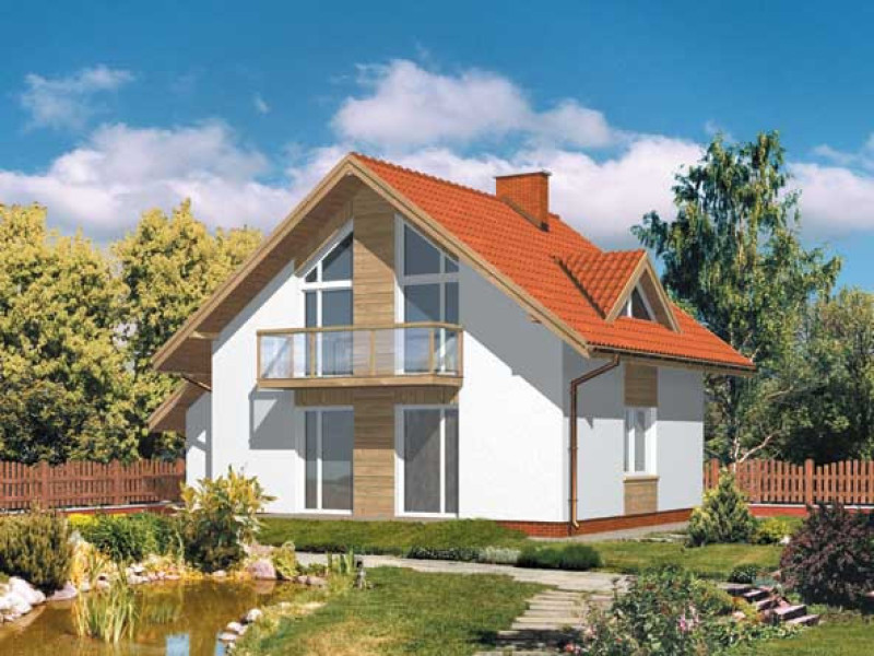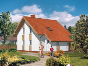 Budynek jednorodzinny, parterowy z poddaszem mieszkalnym, niepodpiwniczonyŚciany zewnętrzne: gr. 36 cm z pustakow ceramicznych + styropian; strop: żelbetowy; schody: drewniane; dach: dwuspadowy o nachyleniu 37 stopni, więźba krokwiowa, krycie dachówką