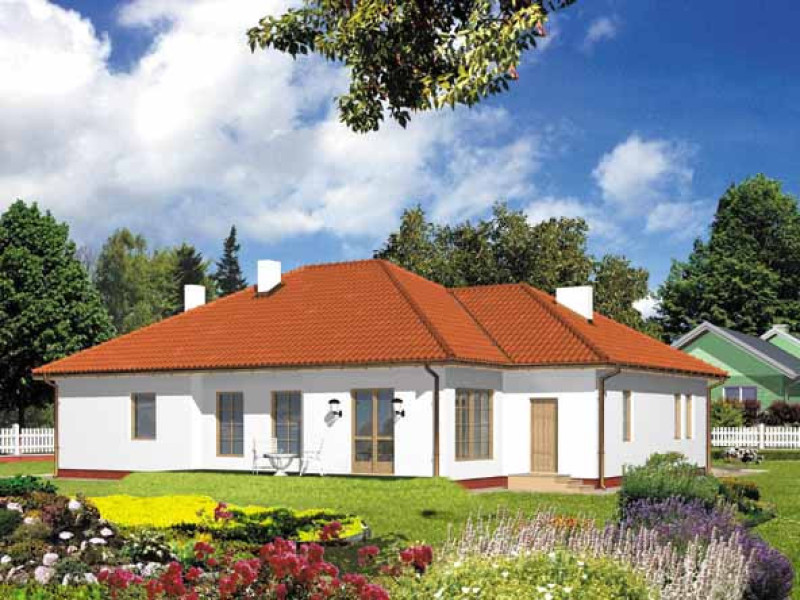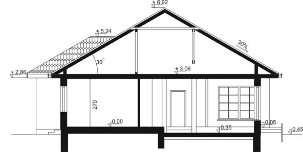 Budynek jednorodzinny, parterowy, z poddaszem nieużytkowym, niepodpiwniczonyŚciany zewnętrzne: gr. 38,0 cm; pustak POROTHERM; strop: drewniany; dach: czterospadowy o nachyleniu 30 stopni, więźba krokwiowo-płatwiowa krycie dachówką bitumiczną