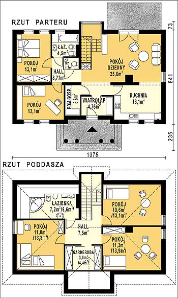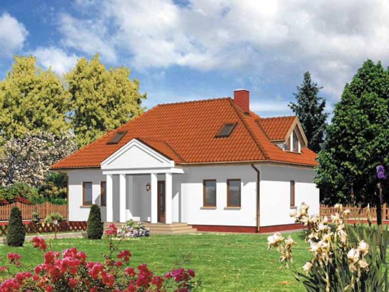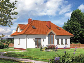 Budynek jednorodzinny parterowy z poddaszem mieszkalnym, niepodpiwniczonyŚciany zewnętrzne: gr. 38,0 cm z pustaków ceramicznych POROTHERM; strop: TERIVA oraz żelbetowy; schody: żelbetowe; dach: czterospadowy o nachyleniu 30 stopni i 40 stopni, więźba krokwiowo-jętkowa, krycie dachówką