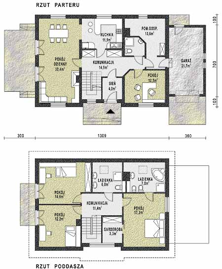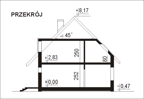 Budynek jednorodzinny, parterowy, z poddaszem mieszkalnym, niepodpiwniczonyŚciany zewnętrzne: grubość 36,5 cm z bloczków YTONG; strop: TERIVA-1; schody: żelbetowe; dach: dwuspadowy o nachyleniu 45 stopni więźba drewniana, krokwiowo-płatwiowa ze słupkami krycie dachówką cementową BRAAS