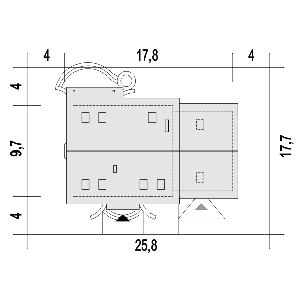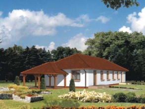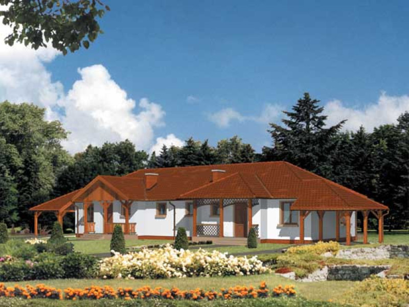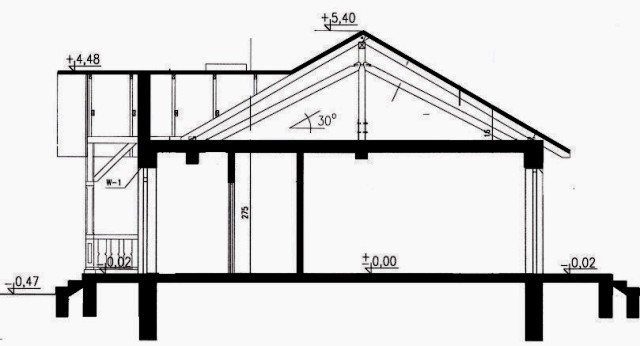 Budynek mieszkalny dwurodzinny (bliźniak), parterowy, z poddaszem nieużytkowym, niepodpiwniczonyŚciany zewnętrzne: grubość 38 cm z pustaków POROTHERM; strop: podwieszany do wieszara dachowego; dach: czterospadowy o nachyleniu 30 stopni, więźba drewniana o układzie wieszarowym, krycie dachówką bitumiczną