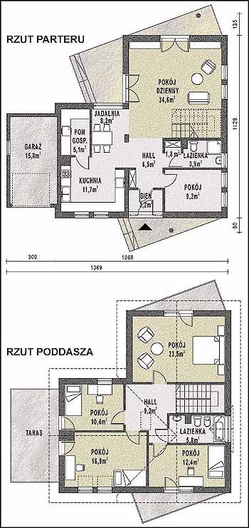 Budynek jednorodzinny, parterowy, z poddaszem mieszkalnym, niepodpiwniczonyŚciany zewnętrzne: grubość 36,5 cm z bloczków YTONG; strop: TERIVA 1; schody: żelbetowe, płytowe, dwubiegowe; dach: dwuspadowy o nachyleniu 43 stopni, więźba drewniana, krycie dachówką cementową BRAAS