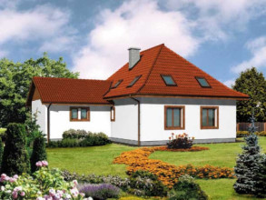 Budynek jednorodziny, parterowy, z poddaszem mieszkalnym, niepodpiwniczony, z garażemŚciany zewnętrzne: grubość 36,5 cm z bloczków YTONG, garaż - grubość 20 cm z bloczków YTONG; strop: parter - FERT 40, poddasze - drewniany, ocieplany 15 cm GULLFIBER, nad garażem wiązary drewniane; schody: drewniane, policzkowe; dach: czterospadowy o nachyleniu 45 stopni, nad garażem dwuspadowy o nachyleniu 30 stopni, więźba krokwiowo-jętkowa, krycie dachówką cementową BRAAS