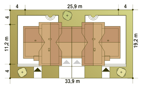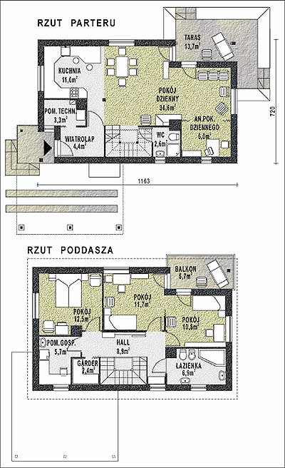 Budynek jednorodzinny piętrowy, niepodpiwniczonyŚciany zewnętrzne: gr. 36,5 cm z bloczków YTONG; strop: drewniane; schody: drewniane; dach: dwuspadowy o nachyleniu 35 stopni, więźba drewniana, krycie blachą