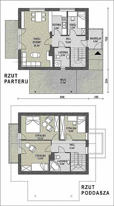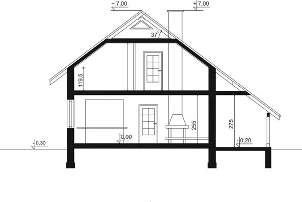 Budynek jednorodzinny, parterowy, z poddaszem mieszkalnym, niepodpiwniczony, z wiatą garażowąŚciany zewnętrzne: grubość 36,5cm; z bloczków YTONG; strop: płyta żelbetowa; schody: drewniane; dach: dwuspadowy o nachyleniu 37 stopni, więźba drewniana, krycie dachówką cementową BRAAS