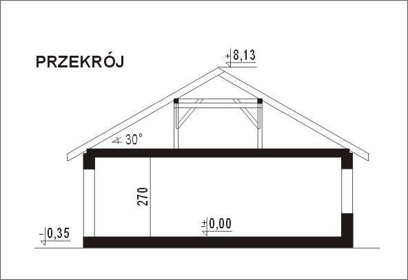 Budynek jednorodzinny, parterowy, z poddaszem nieużytkowym, niepodpiwniczonyŚciany zewnętrzne: grubość 36,5 cm z bloczków YTONG; strop: monolityczny żelbetowy; dach: czterospadowy o nachyleniu 30 stopni, więźba drewniana, krycie dachówką bitumiczną