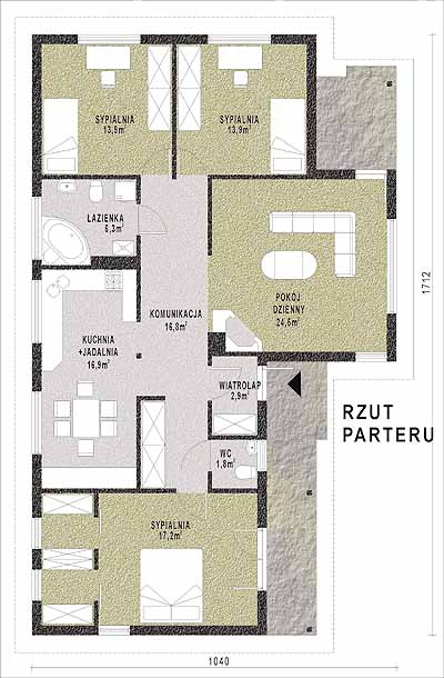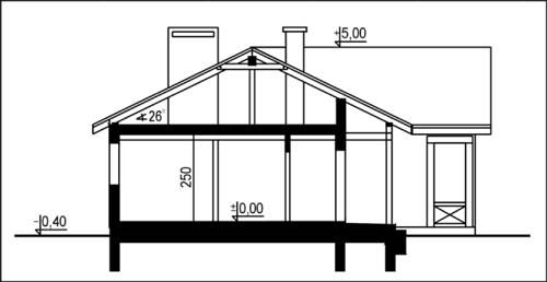 Budynek jednorodzinny, parterowy, z poddaszem nieużytkowym, niepodpiwniczonyŚciany zewnętrzne: gr. 27 cm szkielet drewniany; strop: drewniany; dach: dwuspadowy o nachyleniu 26 stopni, więźba płatwiowo-kleszczowa, krycie dachówką