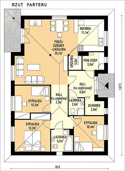 Budynek jednorodzinny, parterowy, z poddaszem nieużytkowym, niepodpiwniczonyŚciany zewnętrzne: grubość 36,5 cm z bloczków YTONG; strop: drewniany; dach: czterospadowy o nachyleniu 31 stopni, więźba płatwiowo-kleszczowa, krycie dachówką ceramiczną