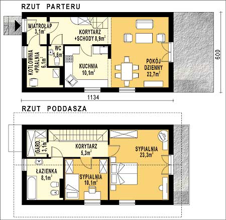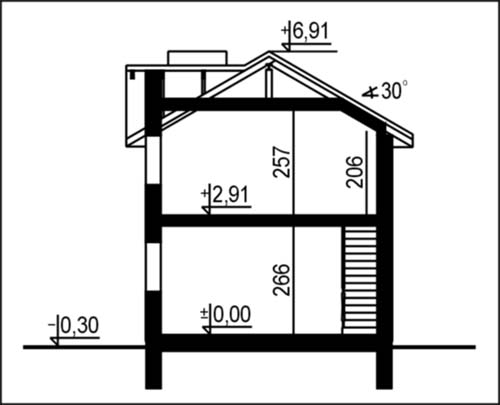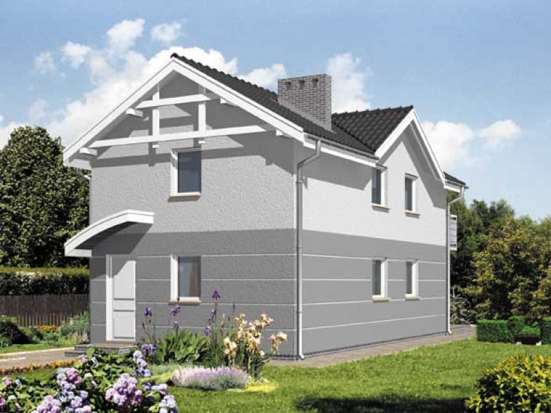 Budynek jednorodzinny, parterowy, z poddaszem mieszkalnym, niepodpiwniczonyŚciany zewnętrzne: grubość 36,5 cm z YTONG; strop: żelbetowy; schody: żelbetowe; dach: dwuspadowy o nachyleniu 30 stopni, więźba krokwiowo-jętkowa, krycie dachówką ceramiczną