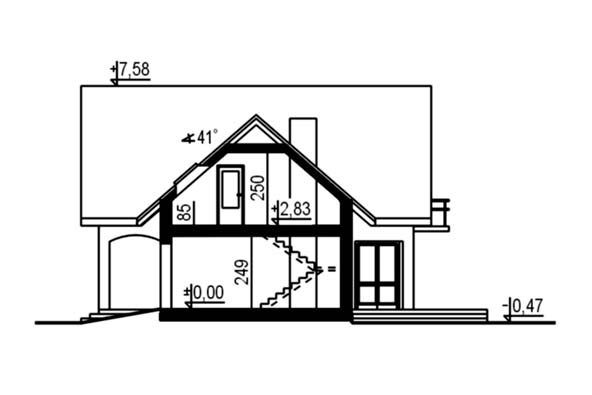 Budynek jednorodzinny, parterowy, z poddaszem mieszkalnym, niepodpiwniczonyŚciany zewnętrzne: grubość 36,5 cm bloczków YTONG; strop: TERIVA; schody: żelbetowe; dach: dwuspadowy o nachyleniu 41 stopni, więźba krokwiowo-jętkowa, krycie dachówką ceramiczną